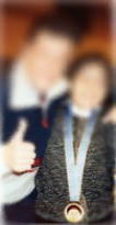金メダル わがスイスチームはカーリングが正式種目となった 第一回目の長野大会で、見事金メダルを獲得した。 とても穏やかで礼儀正しく金メダルにふさわしいチームだった。 ある朝、団長に選手たちの体調はどうですかと聞いたら 「カーリングは体じゃないよ。これだよ。」と頭を指差して 笑っていたが、氷上のチェスといわれ、神業的な技術の 他に、時には3時間にも及ぶ試合の集中力や先を読む 能力のいるスポーツだ。 表彰式を終え金メダルを下げてフェアウエルパーティーに 入ってきた選手たち。満面の笑みを浮かべているが派手な 喜び方をしないの意外だった。外国人はみな派手に感情を 表すと思い込んでいた事に気付き反省させられました。 選手の一人がメダルをかけてくれた。この写真は宝物です。 |