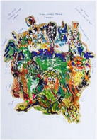 お礼 スイス選手団からお礼に頂いたもの。 トップにお礼の言葉と選手、役員たちのサインがしてある。 団長のふるさと出身の有名な画家のリトグラフで、古い物語を 表しているとか。 選手村を出る朝、「温かいおもてなしありがとう」と選手たち からキスされて、アワアワ・・・どうしよう。こういうあいさつには なかなか慣れません。 |